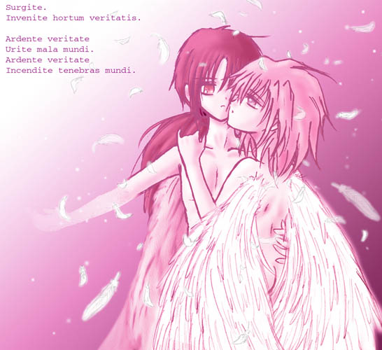 普通に色を塗った後に、色調を統一するために 赤紫色のレイヤーを「カラーモード」でかぶせてあります。 色を変えるだけで、ずいぶんとイメージが変わりました。