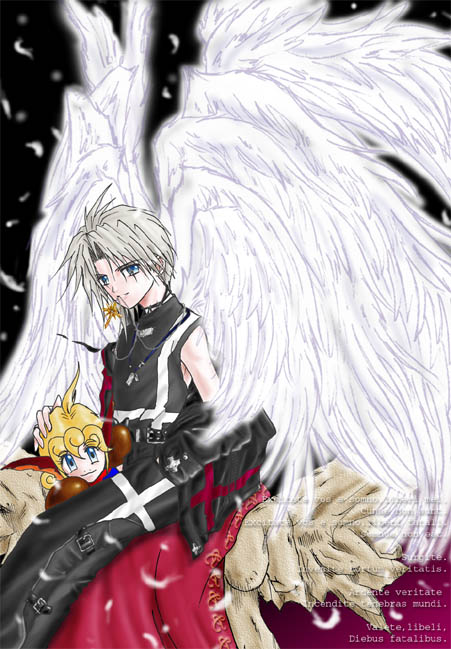 人物をピグマペンで、羽根を鉛筆で描いてます。