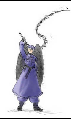 ヴァンダイク:腰の鞭(刃の鞭で剣にもなる)を抜いてそのまま攻撃だ。