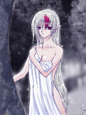いつの間にか、すぐ傍に、体に布を巻きつけた少女が立っていた。長い銀色の髪からぽたぽたと水滴が落ち、地面に黒いしみをつくっている。