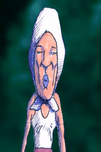茂みの奥に立っていたのは……ひょろりと背の高い痩せた──顔も長い──ほっかむりをした──鍬をかついで籠を背負った──(おそらく)人間の(おそらく)女性だった。